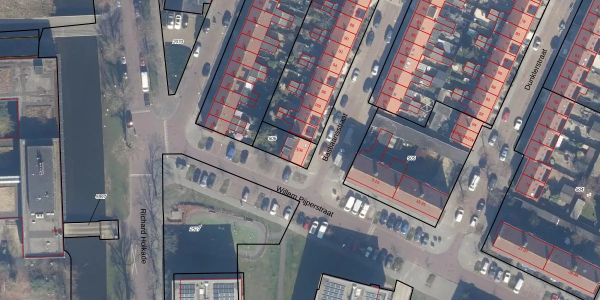 Bastiaansstraat 106 is gelegen op kadastraal perceel HLM02Q506. Deze kadastrale aanduiding is uniek en wordt gebruikt door het Kadaster om eigendomsrechten en andere zakelijke rechten vast te leggen. Het perceel maakt onderdeel uit van de kadastrale gemeente Haarlem.