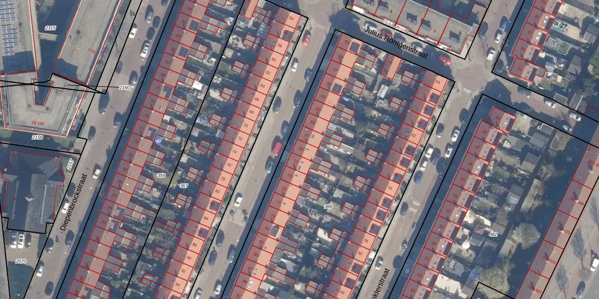 Het perceel waarop Bastiaansstraat 69 staat heeft een oppervlakte van 4295 m². Dit is een zeer groot perceel. De perceeloppervlakte wordt geregistreerd door het Kadaster. Gedetailleerde informatie over de maten van dit perceel kunt u vinden in het rapport Kadastrale kaart met maatvoering van Bastiaansstraat 69.