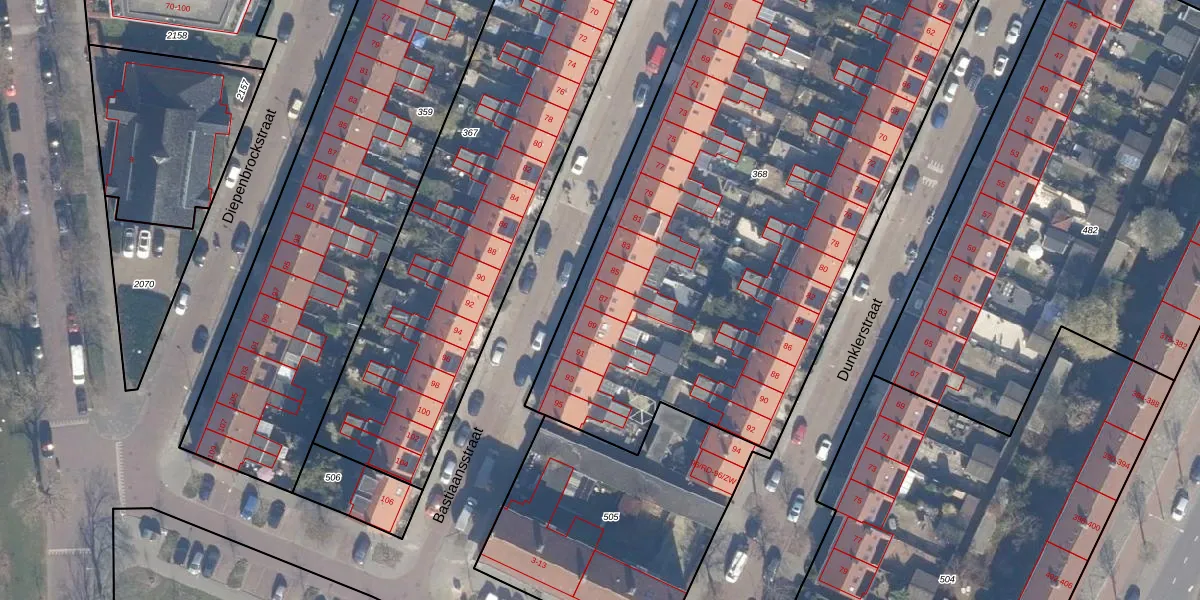 Het perceel waarop Bastiaansstraat 87 staat heeft een oppervlakte van 4295 m². Dit is een zeer groot perceel. De perceeloppervlakte wordt geregistreerd door het Kadaster. Gedetailleerde informatie over de maten van dit perceel kunt u vinden in het rapport Kadastrale kaart met maatvoering van Bastiaansstraat 87.