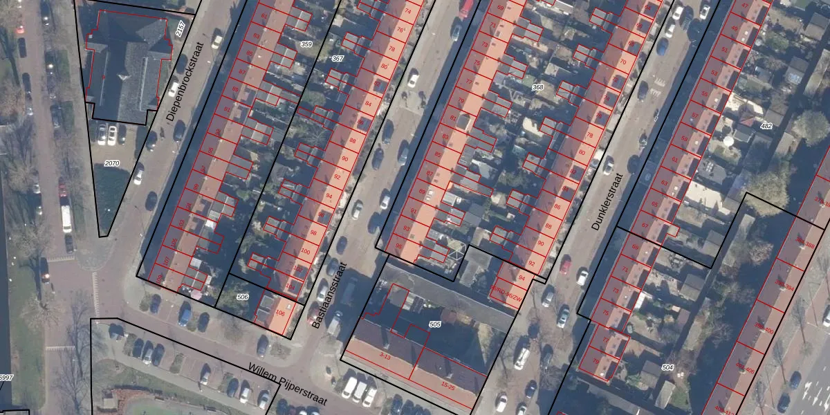 Het perceel waarop Bastiaansstraat 91 staat heeft een oppervlakte van 4295 m². Dit is een zeer groot perceel. De perceeloppervlakte wordt geregistreerd door het Kadaster. Gedetailleerde informatie over de maten van dit perceel kunt u vinden in het rapport Kadastrale kaart met maatvoering van Bastiaansstraat 91.