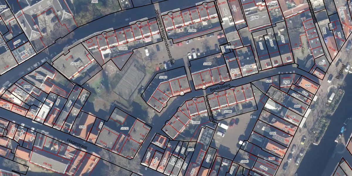 Beeksteeg 9 is gelegen op kadastraal perceel HLM01D10383. Deze kadastrale aanduiding is uniek en wordt gebruikt door het Kadaster om eigendomsrechten en andere zakelijke rechten vast te leggen. Het perceel maakt onderdeel uit van de kadastrale gemeente Haarlem.