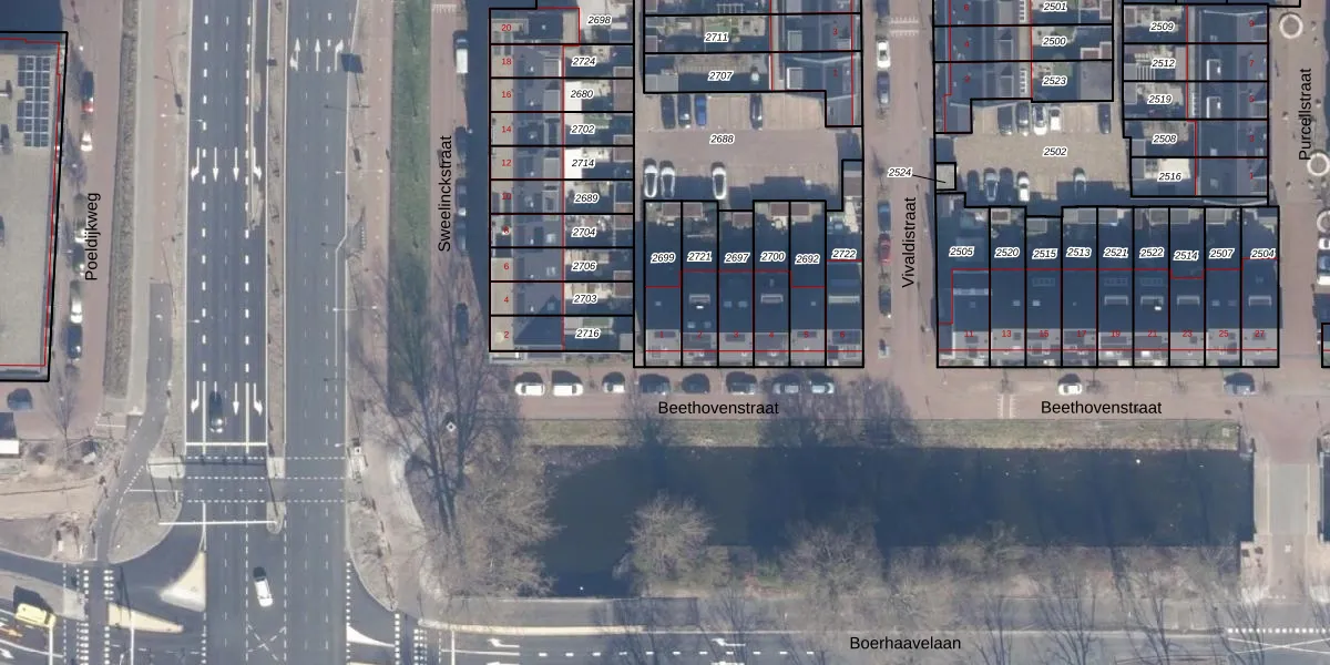 Het perceel waarop Beethovenstraat 1 staat heeft een oppervlakte van 140 m². Dit is een middelgroot perceel. De perceeloppervlakte wordt geregistreerd door het Kadaster. Gedetailleerde informatie over de maten van dit perceel kunt u vinden in het rapport Kadastrale kaart met maatvoering van Beethovenstraat 1.