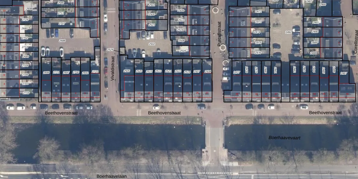 Het perceel waarop Beethovenstraat 21 staat heeft een oppervlakte van 130 m². Dit is een middelgroot perceel. De perceeloppervlakte wordt geregistreerd door het Kadaster. Gedetailleerde informatie over de maten van dit perceel kunt u vinden in het rapport Kadastrale kaart met maatvoering van Beethovenstraat 21.