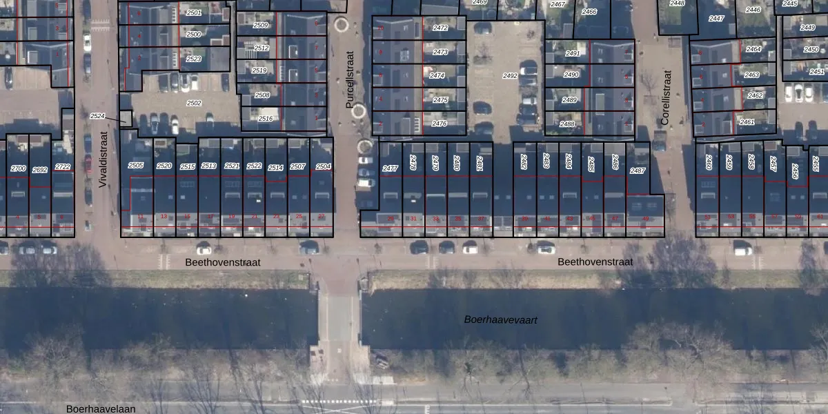 Het perceel waarop het adres ligt is HLM02-Q-2478. De afkorting 'HLM02' staat voor kadastrale gemeente Haarlem. De gemiddelde perceelgrootte in Haarlem is 1124,37 m². Dit perceel is kleiner: de perceeloppervlakte bedraagt 124 m². De grootste perceeloppervlakte in de kadastrale gemeente is 46,4 ha. De kleinste oppervlakte bedraagt 0 m². Dit is het enige adres dat aanwezig is op het perceel. De huidige grenzen van het perceel zijn digitaal in de Basisregistratie Kadaster (BRK) geregistreerd op 03-12-2018.