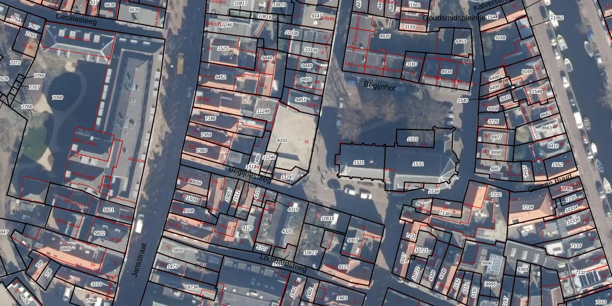 Het perceel waarop Begijnhof 10 staat heeft een oppervlakte van 475 m². Dit is een groot perceel. De perceeloppervlakte wordt geregistreerd door het Kadaster. Gedetailleerde informatie over de maten van dit perceel kunt u vinden in het rapport Kadastrale kaart met maatvoering van Begijnhof 10.