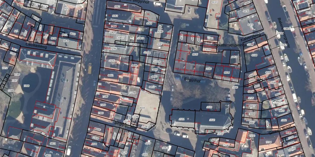 Het perceel waarop Begijnhof 8-B staat heeft een oppervlakte van 87 m². Dit is een klein perceel. De perceeloppervlakte wordt geregistreerd door het Kadaster. Gedetailleerde informatie over de maten van dit perceel kunt u vinden in het rapport Kadastrale kaart met maatvoering van Begijnhof 8-B.