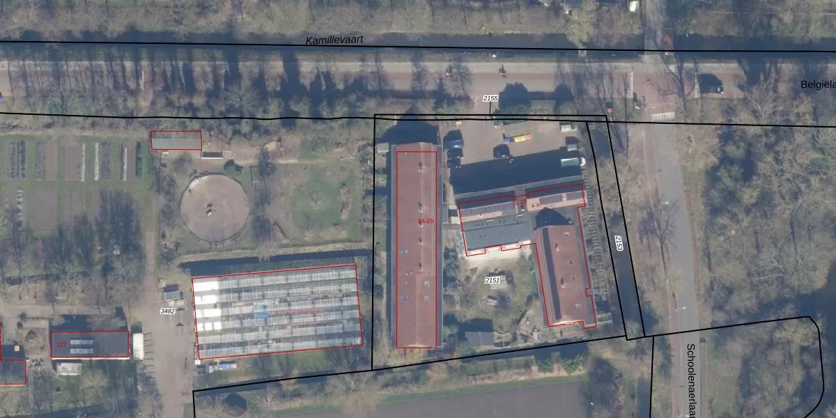 Het perceel waarop Belgiëlaan 2-G staat heeft een oppervlakte van 3130 m². Dit is een zeer groot perceel. De perceeloppervlakte wordt geregistreerd door het Kadaster. Gedetailleerde informatie over de maten van dit perceel kunt u vinden in het rapport Kadastrale kaart met maatvoering van Belgiëlaan 2-G.