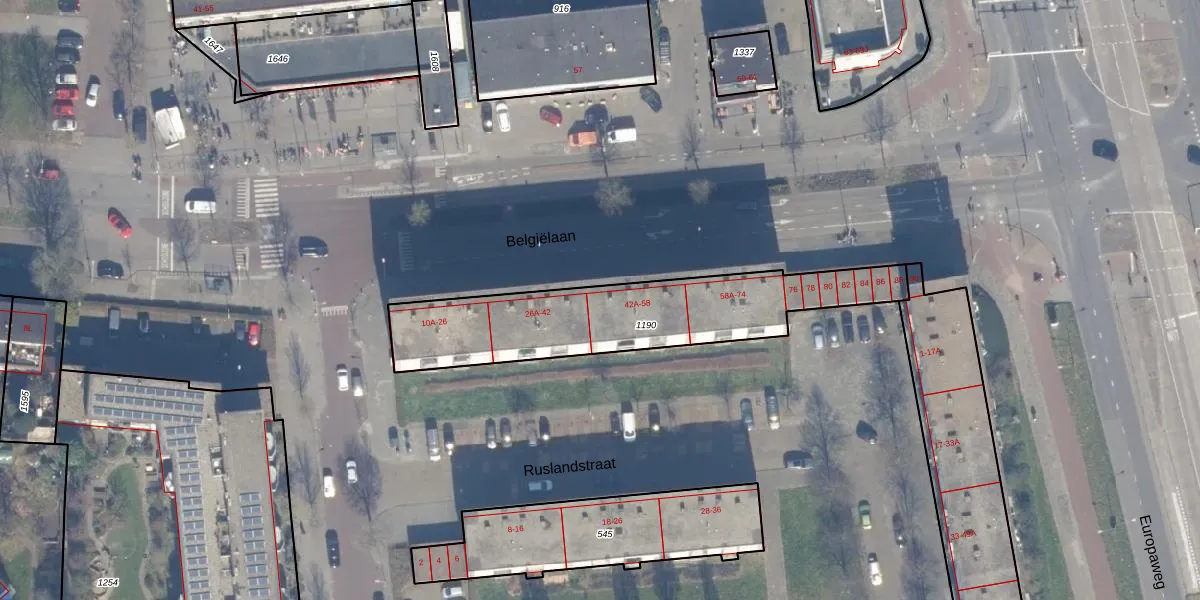 Het perceel waarop Belgiëlaan 42-A staat heeft een oppervlakte van 864 m². Dit is een groot perceel. De perceeloppervlakte wordt geregistreerd door het Kadaster. Gedetailleerde informatie over de maten van dit perceel kunt u vinden in het rapport Kadastrale kaart met maatvoering van Belgiëlaan 42-A.