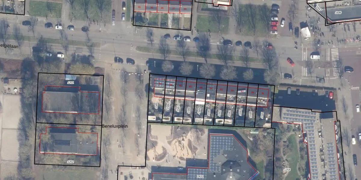 Het perceel waarop Belgiëlaan 8-C staat heeft een oppervlakte van 149 m². Dit is een middelgroot perceel. De perceeloppervlakte wordt geregistreerd door het Kadaster. Gedetailleerde informatie over de maten van dit perceel kunt u vinden in het rapport Kadastrale kaart met maatvoering van Belgiëlaan 8-C.