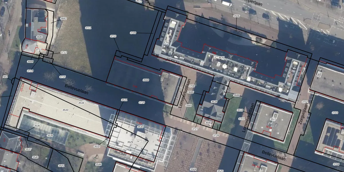 Het perceel waarop Bellevuelaan 14 staat heeft een oppervlakte van 682 m². Dit is een groot perceel. De perceeloppervlakte wordt geregistreerd door het Kadaster. Gedetailleerde informatie over de maten van dit perceel kunt u vinden in het rapport Kadastrale kaart met maatvoering van Bellevuelaan 14.