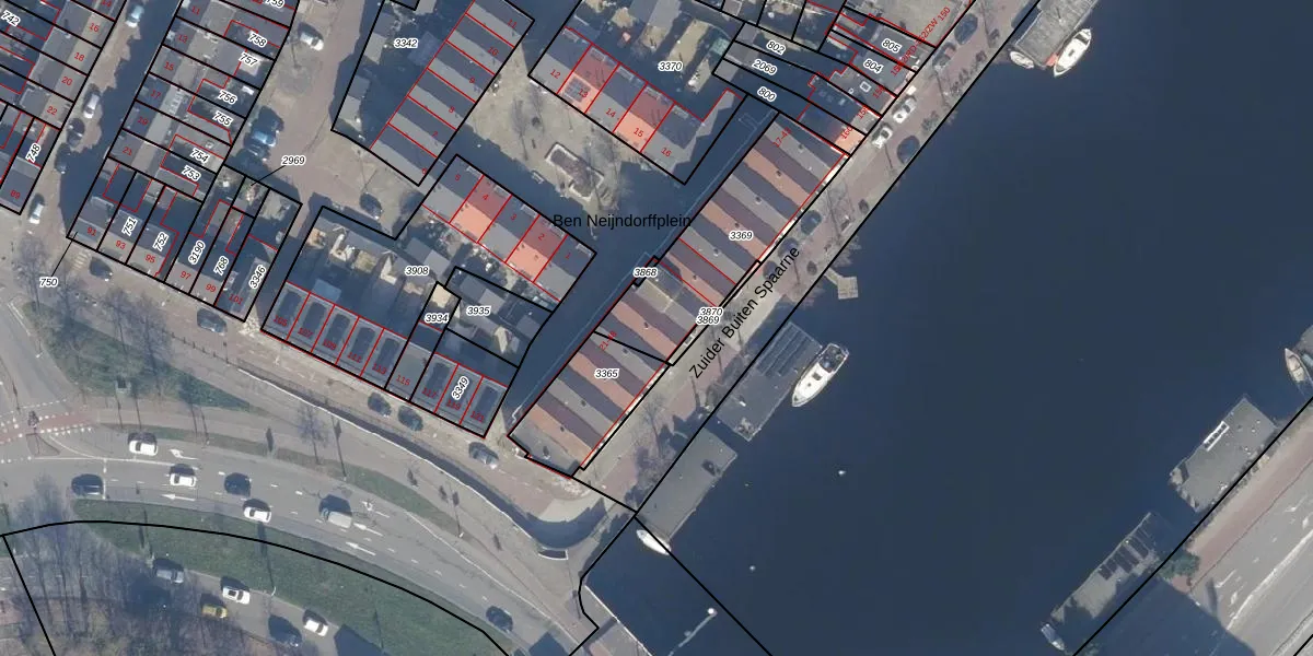 Ben Neijndorffplein 44 is gelegen op kadastraal perceel HLM01K3369. Deze kadastrale aanduiding is uniek en wordt gebruikt door het Kadaster om eigendomsrechten en andere zakelijke rechten vast te leggen. Het perceel maakt onderdeel uit van de kadastrale gemeente Haarlem.
