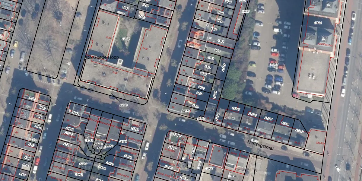 Gebruik de zoekbalk of klik op een perceel voor informatie over de adressen binnen dit perceel.