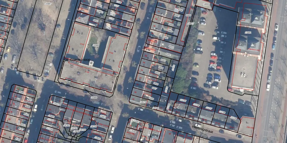 Gebruik de zoekbalk of klik op een perceel voor informatie over de adressen binnen dit perceel.