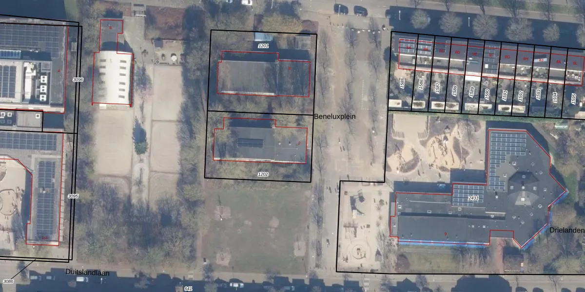 Het perceel waarop Beneluxplein 2 staat heeft een oppervlakte van 835 m². Dit is een groot perceel. De perceeloppervlakte wordt geregistreerd door het Kadaster. Gedetailleerde informatie over de maten van dit perceel kunt u vinden in het rapport Kadastrale kaart met maatvoering van Beneluxplein 2.