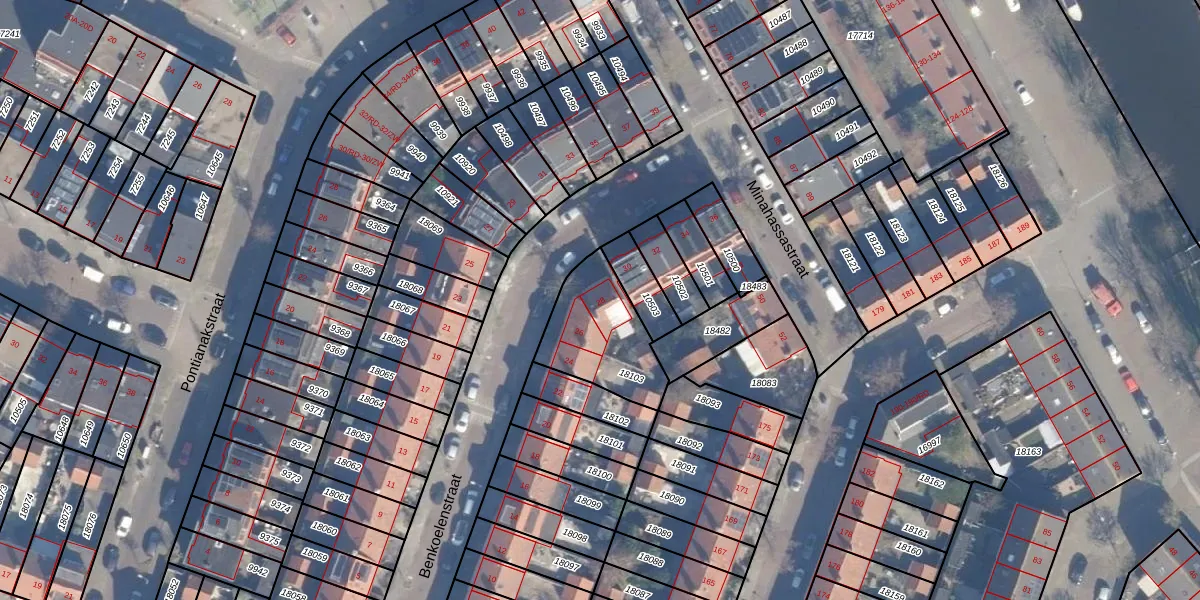 Het perceel waarop Benkoelenstraat 28 staat heeft een oppervlakte van 325 m². Dit is een groot perceel. De perceeloppervlakte wordt geregistreerd door het Kadaster. Gedetailleerde informatie over de maten van dit perceel kunt u vinden in het rapport Kadastrale kaart met maatvoering van Benkoelenstraat 28.