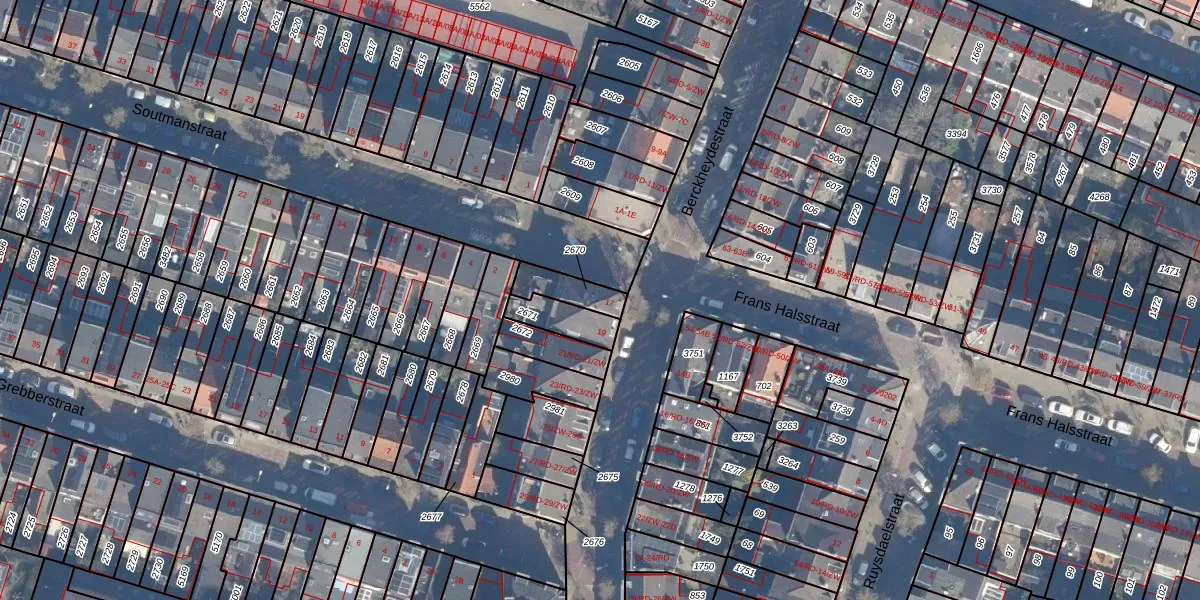 Het perceel waarop Berckheydestraat 17 staat heeft een oppervlakte van 89 m². Dit is een klein perceel. De perceeloppervlakte wordt geregistreerd door het Kadaster. Gedetailleerde informatie over de maten van dit perceel kunt u vinden in het rapport Kadastrale kaart met maatvoering van Berckheydestraat 17.