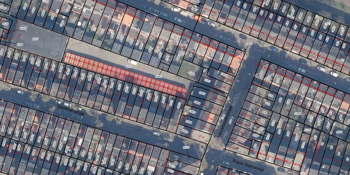 Het perceel waarop Berckheydestraat 3-A-03 staat heeft een oppervlakte van 1070 m². Dit is een zeer groot perceel. De perceeloppervlakte wordt geregistreerd door het Kadaster. Gedetailleerde informatie over de maten van dit perceel kunt u vinden in het rapport Kadastrale kaart met maatvoering van Berckheydestraat 3-A-03.
