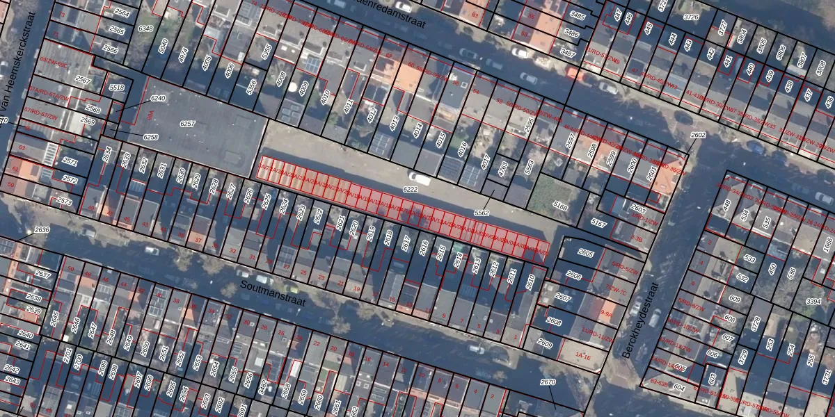 Het perceel waarop Berckheydestraat 3-A-13 staat heeft een oppervlakte van 1070 m². Dit is een zeer groot perceel. De perceeloppervlakte wordt geregistreerd door het Kadaster. Gedetailleerde informatie over de maten van dit perceel kunt u vinden in het rapport Kadastrale kaart met maatvoering van Berckheydestraat 3-A-13.