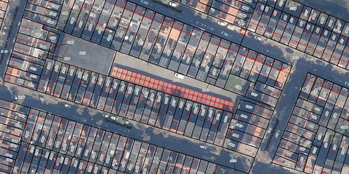 Het perceel waarop Berckheydestraat 3-A-14 staat heeft een oppervlakte van 1070 m². Dit is een zeer groot perceel. De perceeloppervlakte wordt geregistreerd door het Kadaster. Gedetailleerde informatie over de maten van dit perceel kunt u vinden in het rapport Kadastrale kaart met maatvoering van Berckheydestraat 3-A-14.