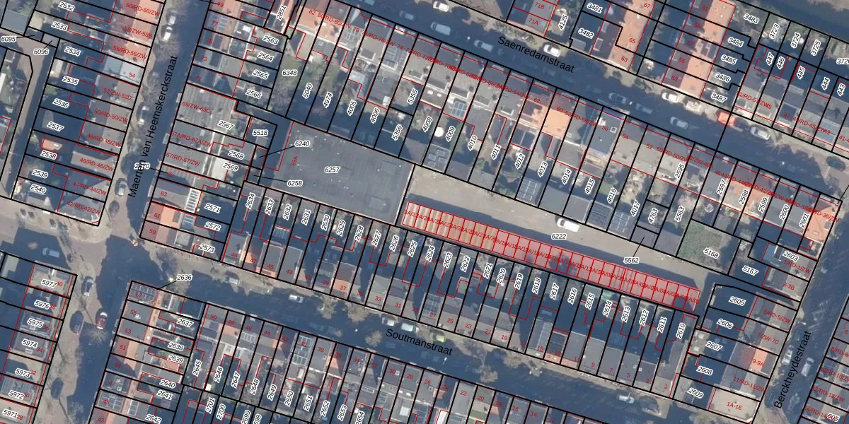 Het perceel waarop Berckheydestraat 3-A-26 staat heeft een oppervlakte van 1070 m². Dit is een zeer groot perceel. De perceeloppervlakte wordt geregistreerd door het Kadaster. Gedetailleerde informatie over de maten van dit perceel kunt u vinden in het rapport Kadastrale kaart met maatvoering van Berckheydestraat 3-A-26.