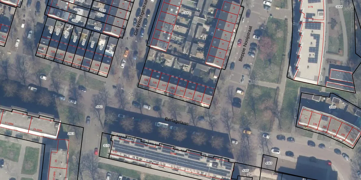 Het perceel waarop Berlagelaan 141 staat heeft een oppervlakte van 3532 m². Dit is een zeer groot perceel. De perceeloppervlakte wordt geregistreerd door het Kadaster. Gedetailleerde informatie over de maten van dit perceel kunt u vinden in het rapport Kadastrale kaart met maatvoering van Berlagelaan 141.