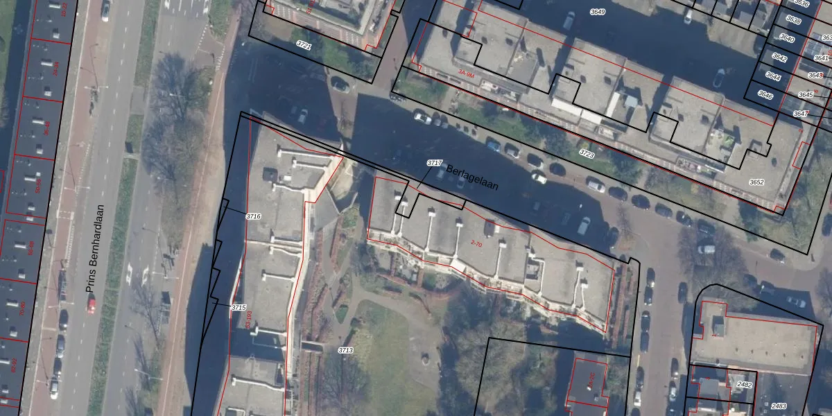 Het perceel waarop Berlagelaan 16 staat heeft een oppervlakte van 6797 m². Dit is een zeer groot perceel. De perceeloppervlakte wordt geregistreerd door het Kadaster. Gedetailleerde informatie over de maten van dit perceel kunt u vinden in het rapport Kadastrale kaart met maatvoering van Berlagelaan 16.