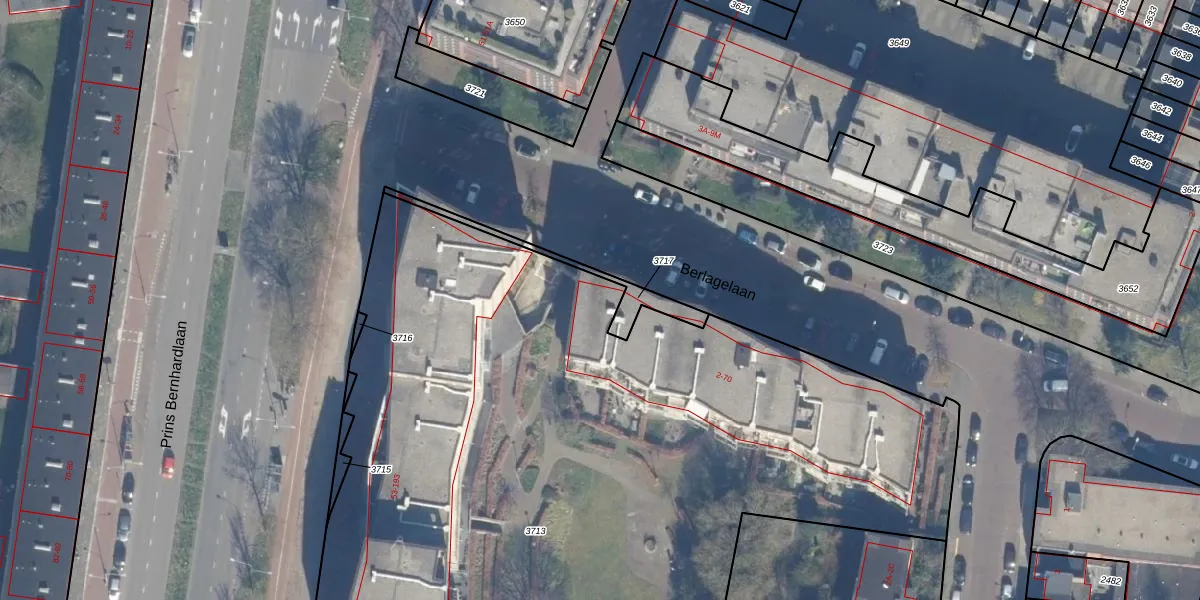 Het perceel waarop Berlagelaan 2 staat heeft een oppervlakte van 6797 m². Dit is een zeer groot perceel. De perceeloppervlakte wordt geregistreerd door het Kadaster. Gedetailleerde informatie over de maten van dit perceel kunt u vinden in het rapport Kadastrale kaart met maatvoering van Berlagelaan 2.