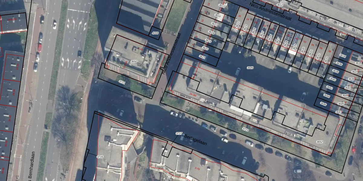 Het perceel waarop Berlagelaan 3-E staat heeft een oppervlakte van 970 m². Dit is een groot perceel. De perceeloppervlakte wordt geregistreerd door het Kadaster. Gedetailleerde informatie over de maten van dit perceel kunt u vinden in het rapport Kadastrale kaart met maatvoering van Berlagelaan 3-E.