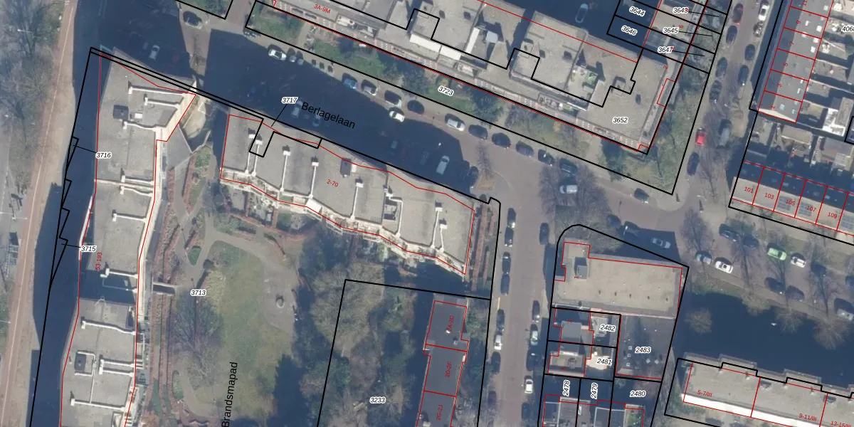 Het perceel waarop Berlagelaan 42 staat heeft een oppervlakte van 6797 m². Dit is een zeer groot perceel. De perceeloppervlakte wordt geregistreerd door het Kadaster. Gedetailleerde informatie over de maten van dit perceel kunt u vinden in het rapport Kadastrale kaart met maatvoering van Berlagelaan 42.