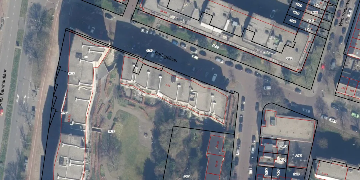 Het perceel waarop Berlagelaan 54 staat heeft een oppervlakte van 6797 m². Dit is een zeer groot perceel. De perceeloppervlakte wordt geregistreerd door het Kadaster. Gedetailleerde informatie over de maten van dit perceel kunt u vinden in het rapport Kadastrale kaart met maatvoering van Berlagelaan 54.