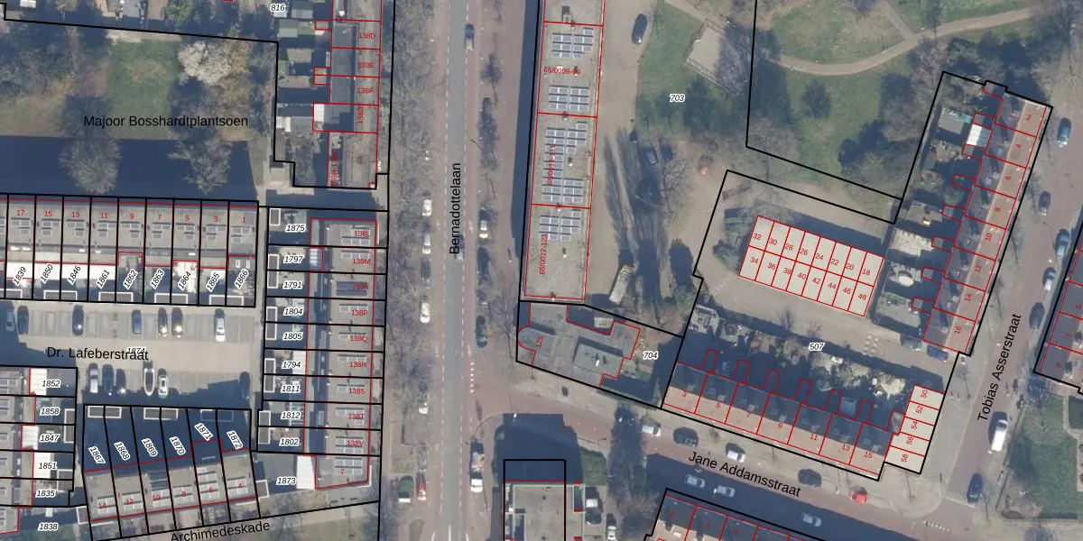 Bernadottelaan 119 is gelegen op kadastraal perceel HLM02X703. Deze kadastrale aanduiding is uniek en wordt gebruikt door het Kadaster om eigendomsrechten en andere zakelijke rechten vast te leggen. Het perceel maakt onderdeel uit van de kadastrale gemeente Haarlem.