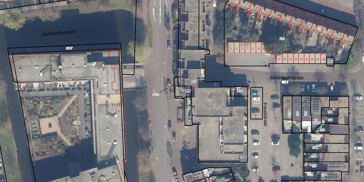 Gebruik de zoekbalk of klik op een perceel voor informatie over de adressen binnen dit perceel.