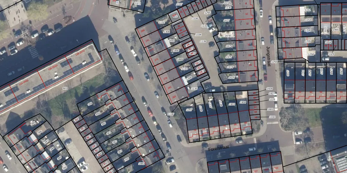 Het adres ligt op het perceel HLM02-X-1268, dat zich in de kadastrale gemeente Haarlem bevindt. De gemiddelde perceelgrootte in Haarlem is 1124,3 m². Dit perceel is kleiner: de perceeloppervlakte bedraagt 136 m². Het kleinste perceel in de kadastrale gemeente is 0 m² groot. De grootste perceeloppervlakte is 46,4 ha. Er zijn geen andere adressen aanwezig op het perceel. De huidige grenzen van het perceel zijn digitaal in de Basisregistratie Kadaster (BRK) geregistreerd op 15-04-2010.
