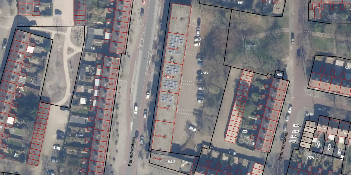 Bernadottelaan 5-0012 is gelegen op kadastraal perceel HLM02X1200. Deze kadastrale aanduiding is uniek en wordt gebruikt door het Kadaster om eigendomsrechten en andere zakelijke rechten vast te leggen. Het perceel maakt onderdeel uit van de kadastrale gemeente Haarlem.