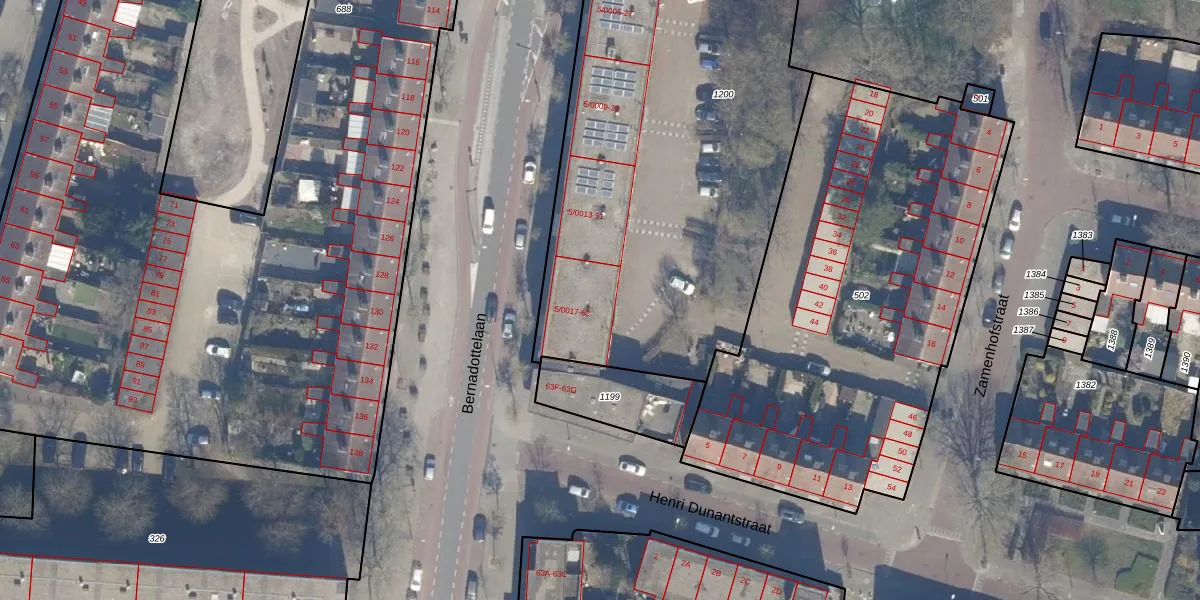 Bernadottelaan 5-0018 is gelegen op kadastraal perceel HLM02X1200. Deze kadastrale aanduiding is uniek en wordt gebruikt door het Kadaster om eigendomsrechten en andere zakelijke rechten vast te leggen. Het perceel maakt onderdeel uit van de kadastrale gemeente Haarlem.