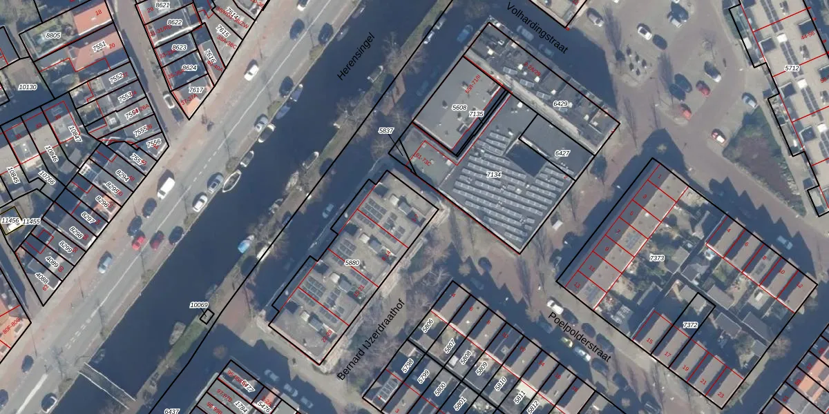 Het adres ligt op het perceel HLM01-E-5880, dat zich in de kadastrale gemeente Haarlem bevindt. Het perceel is met 818 m² relatief groot. Het gemiddelde ligt in de kadastrale gemeente Haarlem op 328,09 m². De grootste perceeloppervlakte in de kadastrale gemeente is 13,9 ha. De kleinste oppervlakte bedraagt 0 m². Op het perceel liggen in totaal 28 adressen. De laatste wijziging in het de Basisregistratie Kadaster (BRK) was op 16-09-2005.