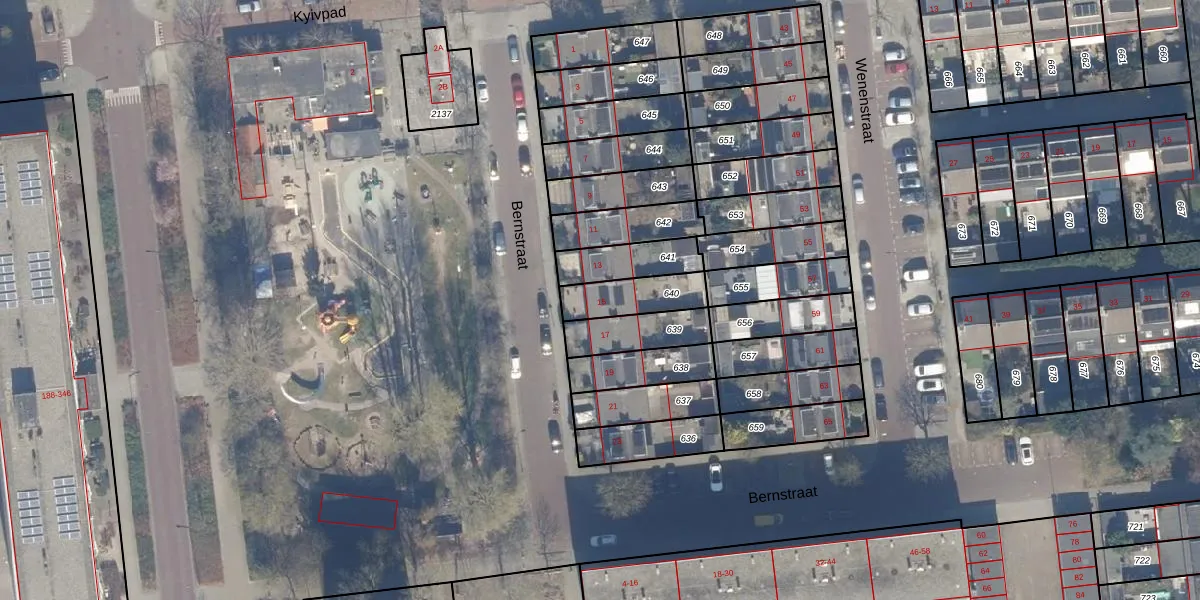 Het perceel waarop Bernstraat 15 staat heeft een oppervlakte van 147 m². Dit is een middelgroot perceel. De perceeloppervlakte wordt geregistreerd door het Kadaster. Gedetailleerde informatie over de maten van dit perceel kunt u vinden in het rapport Kadastrale kaart met maatvoering van Bernstraat 15.