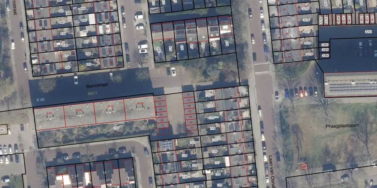 Het perceel waarop Bernstraat 76 staat heeft een oppervlakte van 1940 m². Dit is een zeer groot perceel. De perceeloppervlakte wordt geregistreerd door het Kadaster. Gedetailleerde informatie over de maten van dit perceel kunt u vinden in het rapport Kadastrale kaart met maatvoering van Bernstraat 76.