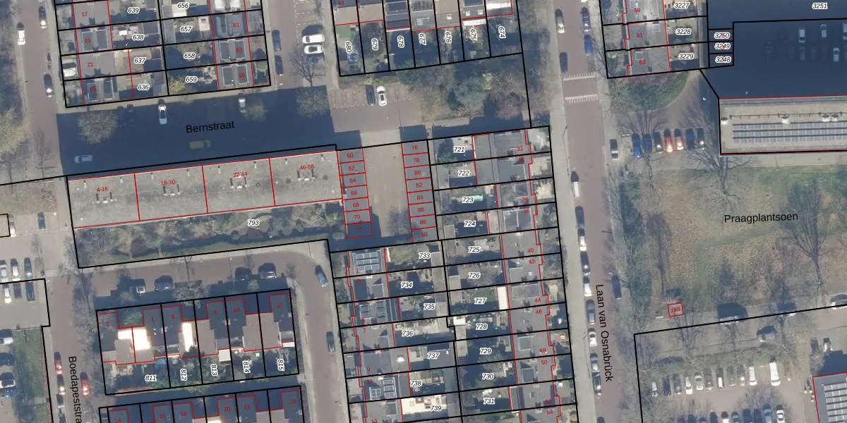 Het perceel waarop Bernstraat 86 staat heeft een oppervlakte van 1940 m². Dit is een zeer groot perceel. De perceeloppervlakte wordt geregistreerd door het Kadaster. Gedetailleerde informatie over de maten van dit perceel kunt u vinden in het rapport Kadastrale kaart met maatvoering van Bernstraat 86.