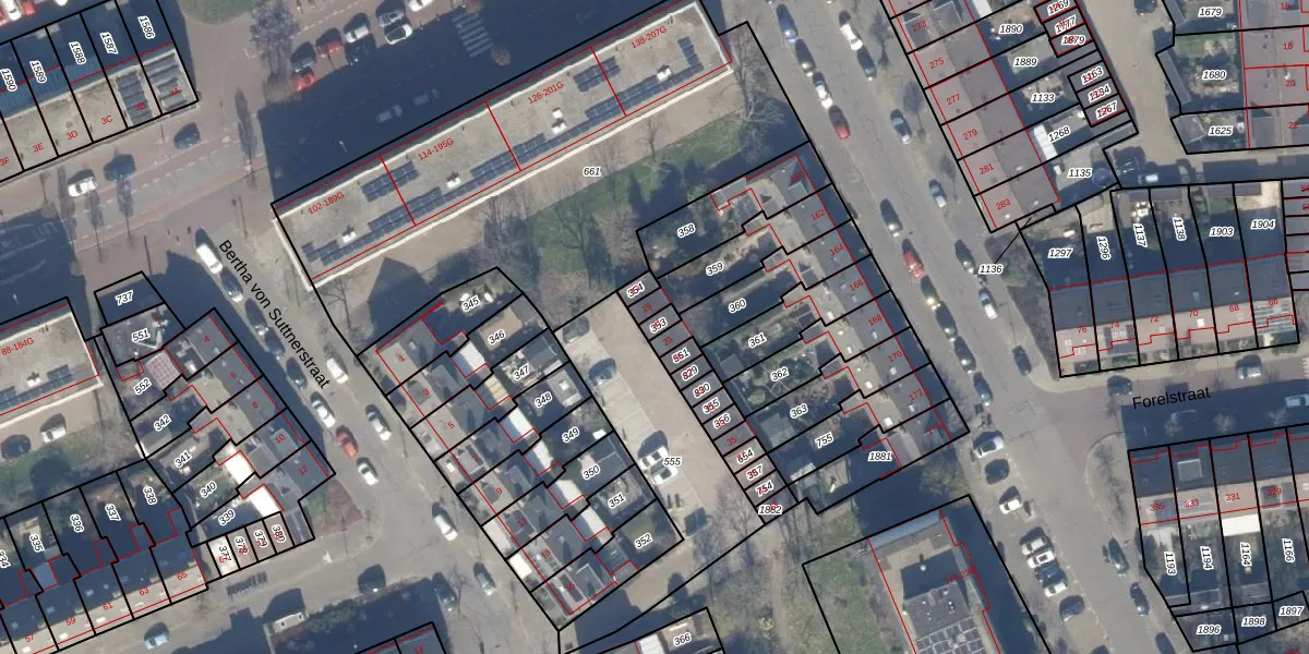 Het perceel waarop Bertha von Suttnerstraat 21 staat heeft een oppervlakte van 18 m². Dit is een klein perceel. De perceeloppervlakte wordt geregistreerd door het Kadaster. Gedetailleerde informatie over de maten van dit perceel kunt u vinden in het rapport Kadastrale kaart met maatvoering van Bertha von Suttnerstraat 21.