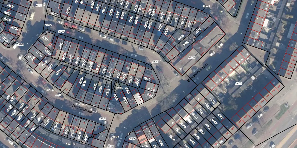 Het perceel waarop Besoekistraat 32-A staat heeft een oppervlakte van 82 m². Dit is een klein perceel. De perceeloppervlakte wordt geregistreerd door het Kadaster. Gedetailleerde informatie over de maten van dit perceel kunt u vinden in het rapport Kadastrale kaart met maatvoering van Besoekistraat 32-A.