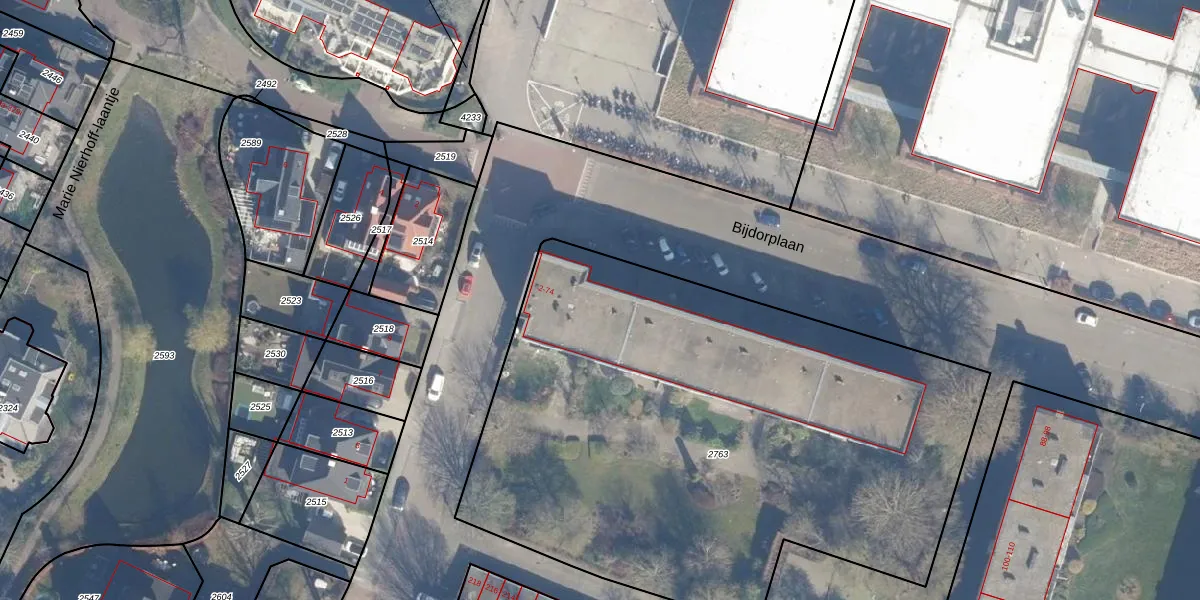 Het perceel waarop Bijdorplaan 8 staat heeft een oppervlakte van 3636 m². Dit is een zeer groot perceel. De perceeloppervlakte wordt geregistreerd door het Kadaster. Gedetailleerde informatie over de maten van dit perceel kunt u vinden in het rapport Kadastrale kaart met maatvoering van Bijdorplaan 8.