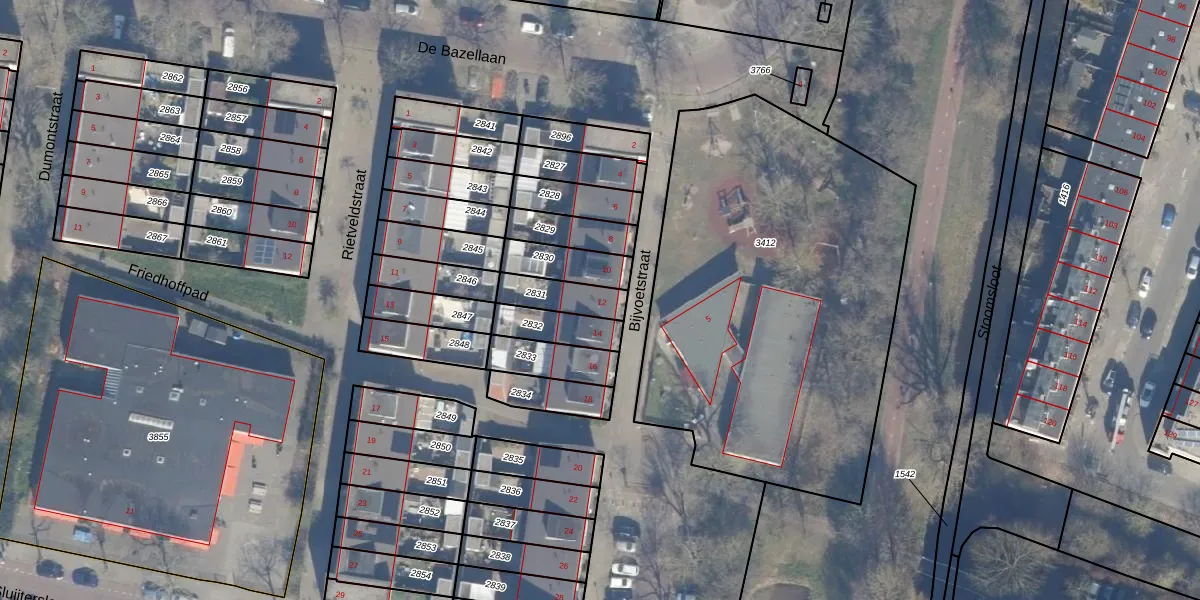 Het perceel waarop Bijvoetstraat 12 staat heeft een oppervlakte van 116 m². Dit is een middelgroot perceel. De perceeloppervlakte wordt geregistreerd door het Kadaster. Gedetailleerde informatie over de maten van dit perceel kunt u vinden in het rapport Kadastrale kaart met maatvoering van Bijvoetstraat 12.