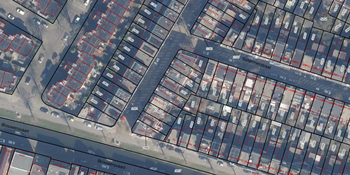 Het adres ligt op het perceel HLM01-A-2357, dat zich in de kadastrale gemeente Haarlem bevindt. Het perceel is 114 m² groot. Dat is kleiner dan de gemiddelde perceeloppervlakte in Haarlem, dat op 328,17 m² ligt. De grootste perceeloppervlakte in de kadastrale gemeente is 13,9 ha. De kleinste oppervlakte bedraagt 0 m². Op het perceel liggen in totaal 2 adressen. De huidige grenzen van het perceel zijn digitaal in de Basisregistratie Kadaster (BRK) geregistreerd op 28-11-1997.
