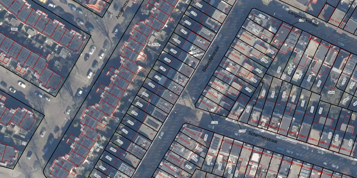 Gebruik de zoekbalk of klik op een perceel voor informatie over de adressen binnen dit perceel.