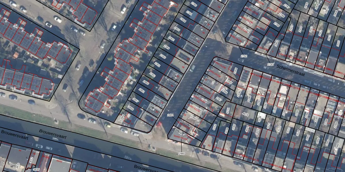 Gebruik de zoekbalk of klik op een perceel voor informatie over de adressen binnen dit perceel.