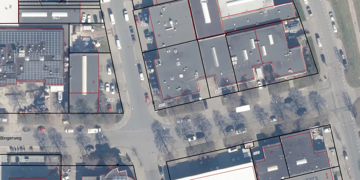 Het perceel waarop Bingerweg 19 staat heeft een oppervlakte van 1030 m². Dit is een zeer groot perceel. De perceeloppervlakte wordt geregistreerd door het Kadaster. Gedetailleerde informatie over de maten van dit perceel kunt u vinden in het rapport Kadastrale kaart met maatvoering van Bingerweg 19.