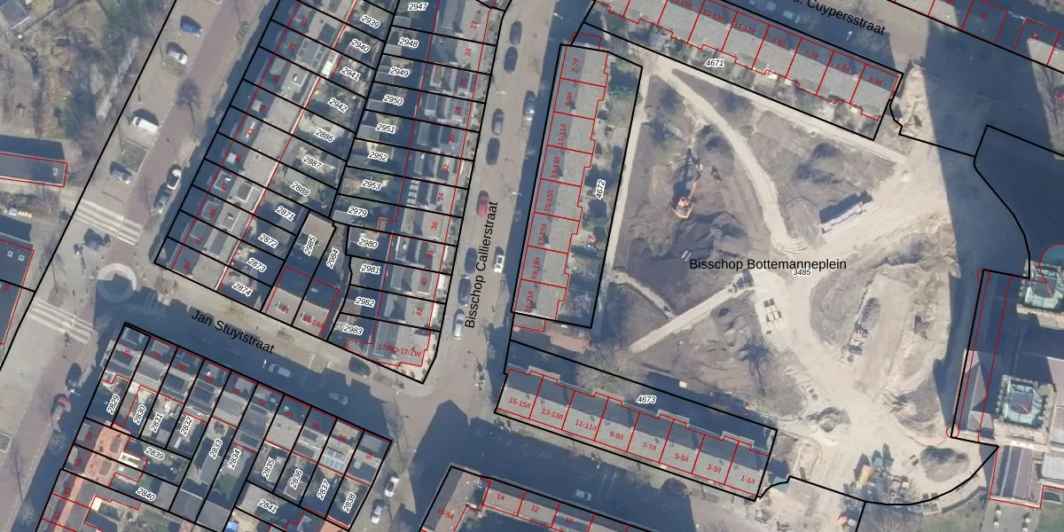 Het perceel waarop Bisschop Callierstraat 19 staat heeft een oppervlakte van 810 m². Dit is een groot perceel. De perceeloppervlakte wordt geregistreerd door het Kadaster. Gedetailleerde informatie over de maten van dit perceel kunt u vinden in het rapport Kadastrale kaart met maatvoering van Bisschop Callierstraat 19.