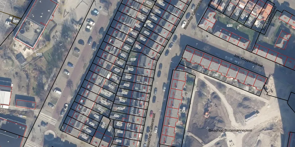 Het perceel waarop Bisschop Callierstraat 24 staat heeft een oppervlakte van 115 m². Dit is een middelgroot perceel. De perceeloppervlakte wordt geregistreerd door het Kadaster. Gedetailleerde informatie over de maten van dit perceel kunt u vinden in het rapport Kadastrale kaart met maatvoering van Bisschop Callierstraat 24.