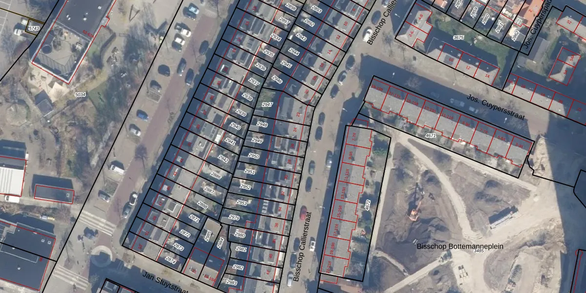 Het perceel waarop Bisschop Callierstraat 26 staat heeft een oppervlakte van 118 m². Dit is een middelgroot perceel. De perceeloppervlakte wordt geregistreerd door het Kadaster. Gedetailleerde informatie over de maten van dit perceel kunt u vinden in het rapport Kadastrale kaart met maatvoering van Bisschop Callierstraat 26.